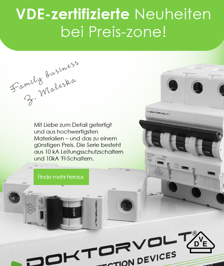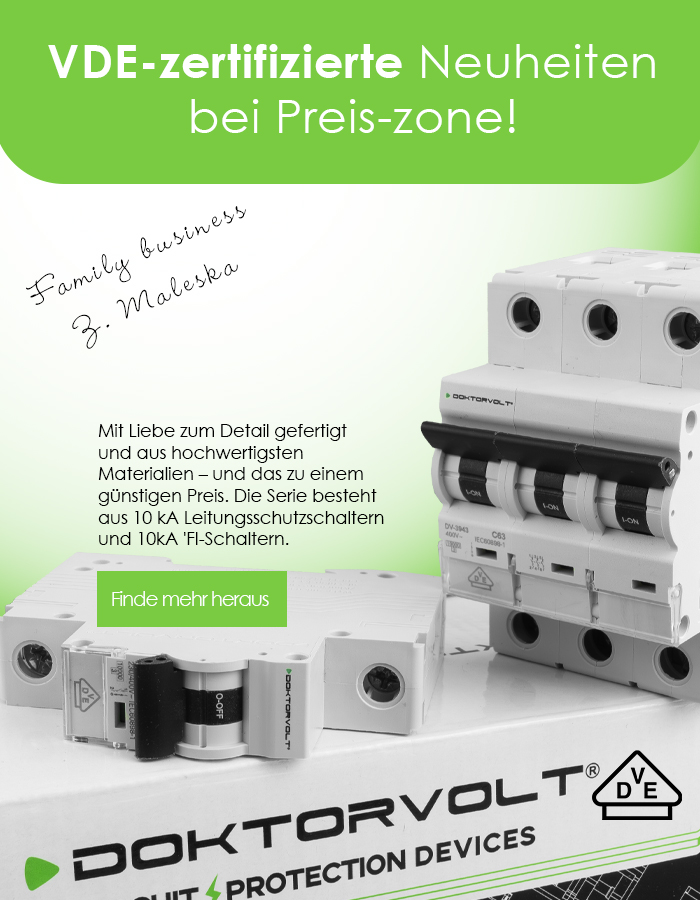 Willkommen bei Preis-Zone.com, Ihrem führenden Online-Shop für Elektrotechnik in Deutschland. Als autorisierter Distributor der Firma Doktorvolt bieten wir eine breite Palette von hochwertigen Produkten an, die auf Ihre Bedürfnisse zugeschnitten sind. Unser Sortiment umfasst: