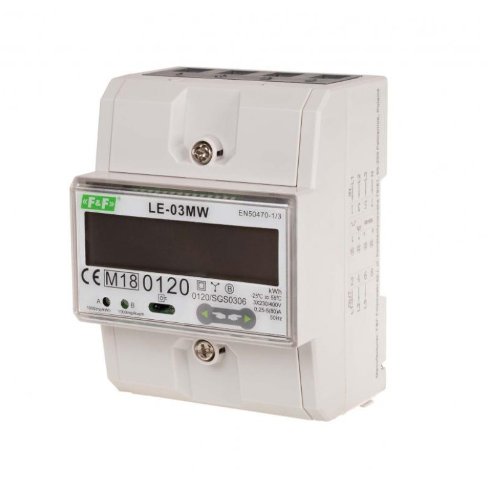 ➡️ Der 3-Phasen Stromzähler LE-03MW ist ein elektronischer Tarifzähler. Er ermöglicht die Messung des Energieflusses in zwei Richtungen. Er ist für die Messung des Energieverbrauchs in einem direkten Stromkreis konzipiert. Entspricht der MID-Richtlinie.