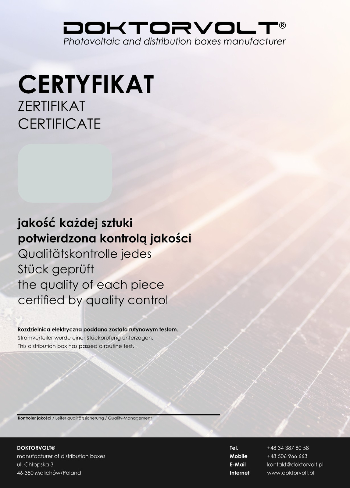 In Anbetracht der Klimaprobleme wird die Solarenergie in den europäischen Ländern immer beliebter. Ein wichtiger Aspekt der Photovoltaikanlage ist die Auswahl geeigneter Schutzvorrichtungen - ihre Qualität und Haltbarkeit beeinflussen unsere Sicherheit. Nach diesen Kriterien haben wir unser Angebot um Solar Anschlusskästen des Herstellers Doktorvolt erweitert. Dieses Unternehmen hat sich auf die Herstellung von hochwertigen Baustromverteilern mit Steckdosen, Solar Anschlusskästen und Verlängerungskabeln spezialisiert. Es zeichnet sich auf dem Markt durch seine Qualität, seine Liebe zum Detail und seinen komplexen Kundenservice aus.