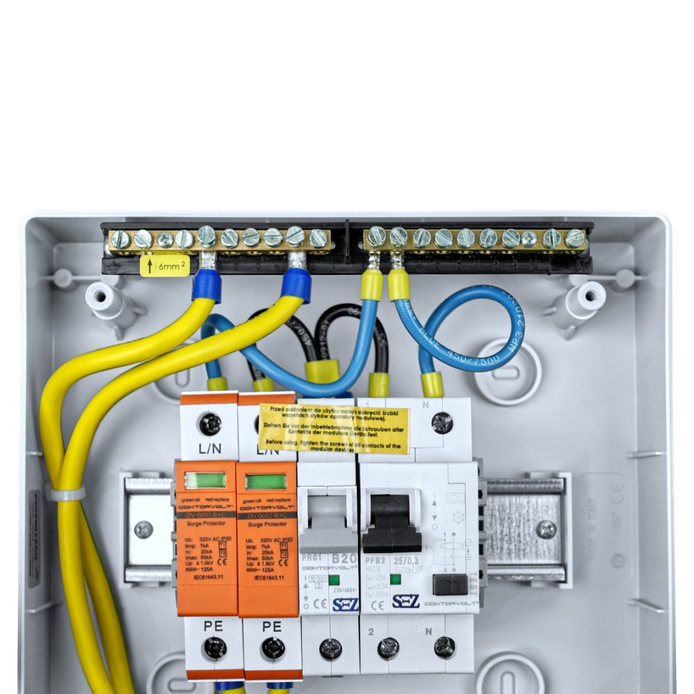 Solar Anschlusskasten AC B20 25A 300mA IP65 2x Überspannungschutz AC T1 T2