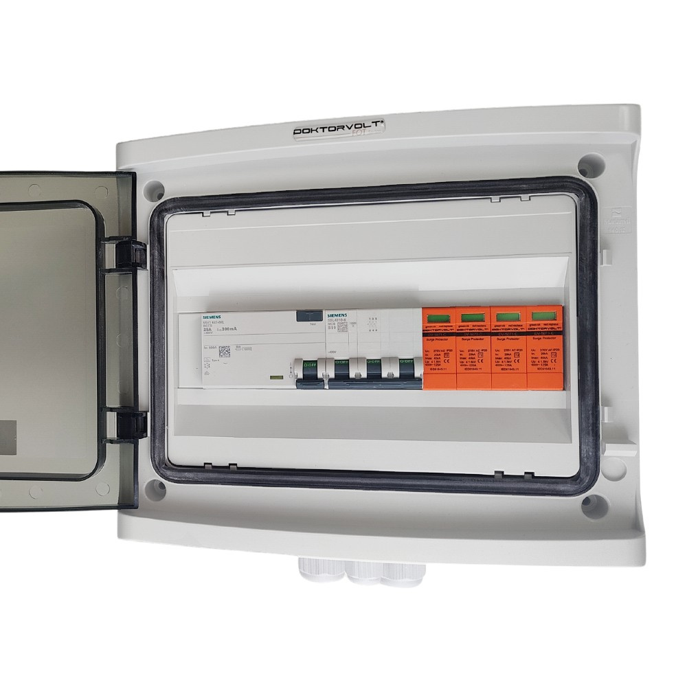 Doktorvolt Solar Anschlusskasten Photovoltaik AC SIEMENS 3P B10A 25A 300mA Überspannungsschutz T2 DV-0737-FOT