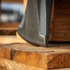 Das Hakenende des Griffs garantiert einen festen Halt und verhindert ein Verrutschen der Axt.
