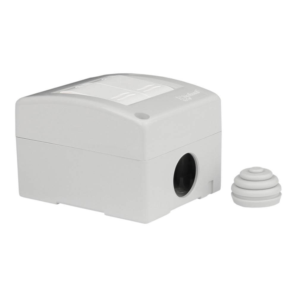 Doppel- Lichtschalter für die Aufputzmontage. Ideal für Treppenhäuser, Garagen, Keller und andere Räume. Der Schalter ist IP40 geschützt und in einem Kunststoffgehäuse untergebracht. Ein weiterer Vorteil des Schalters ist die Möglichkeit, die Schwäche hinten und unten oder oben durch die Stopfbuchse zu erfassen.