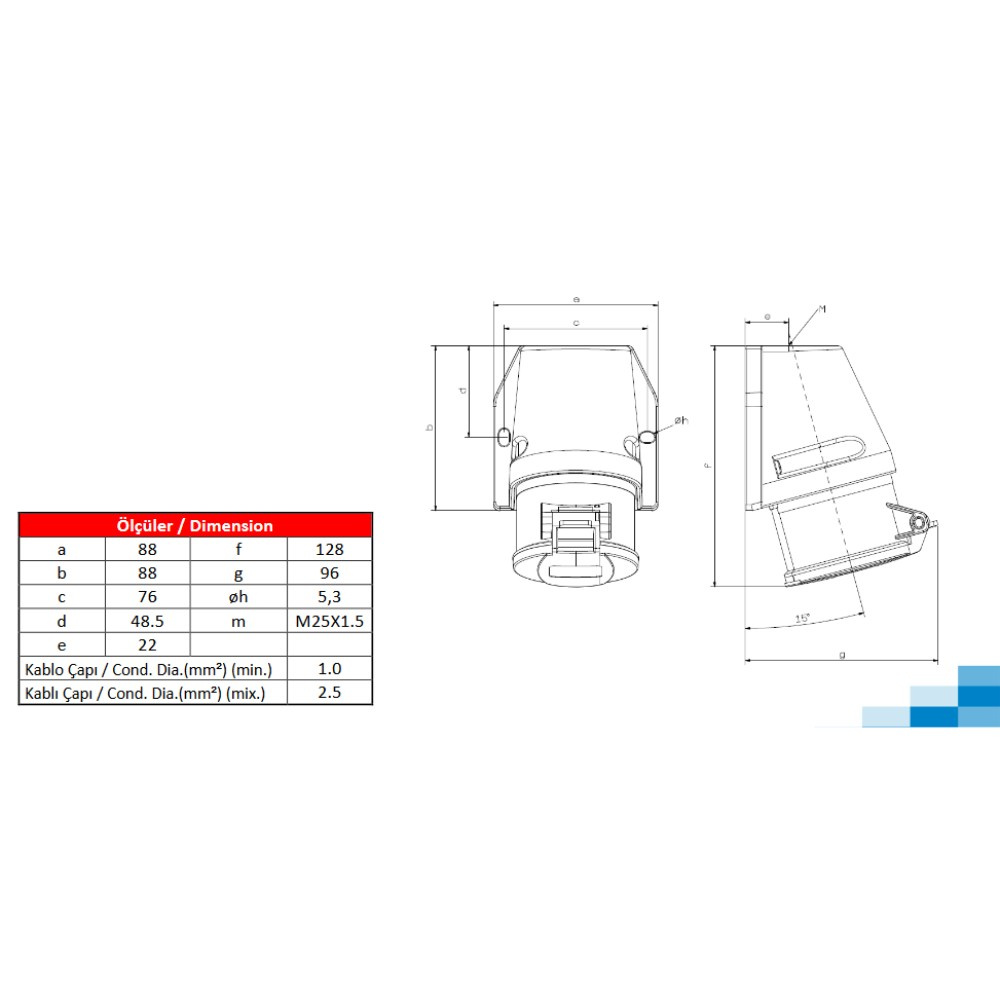 CEE Wandsteckdose Aufputz 4P 16A IP44 400V 3122-307-1600