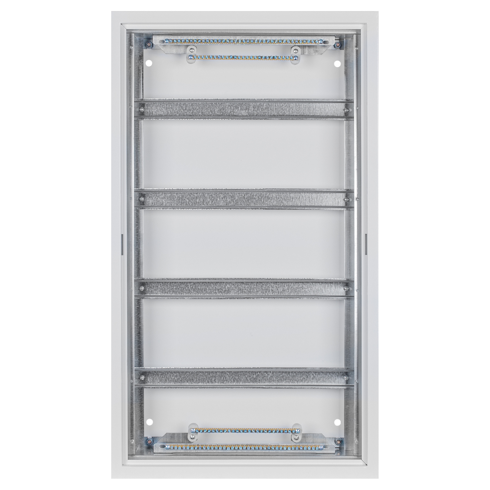 Der Verteilerkasten besteht aus 4 Reihen DIN-Schienen, auf denen 72 Module montiert werden können. Es besteht die Möglichkeit, 18 Module auf einer Schiene zu montieren. Der Verteilerschrank verfügt außerdem über eine Tür mit Drehschloss, die einen geschützten Zugang zum Inneren des Sicherungskasten ermöglicht. Die Türen sind so konzipiert, dass sie je nach Bedarf nach links oder rechts geöffnet werden können. Die Kabeleinführung ist sowohl von oben als auch von unten möglich, je nach Bedarf. Die durchdachte Konstruktion des Kastens erlaubt es, Kabel sowohl von unten als auch von oben zu verlegen. Ein weiterer Vorteil ist die Möglichkeit, jedes Element des Verteilerkasten abzuschrauben. Um das Innere des Kastens noch sicherer zu machen, kann das Türschloss durch ein Schlüsselschloss ersetzt werden. Die Elemente des Sicherungskastens sind pulverbeschichtet. Dadurch sind sie besser vor Korrosion geschützt.