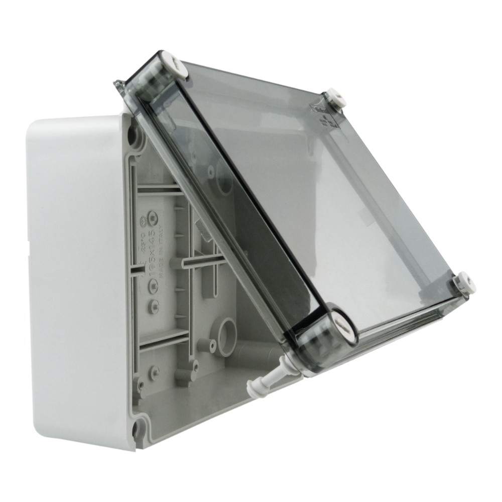 ✔️Die hermetische Aufputzdose hat einen getönten, transparenten Deckel und Boden in grau. Das Produkt zeichnet sich durch einen hohen Schutzgrad gegen mechanische Einwirkungen aus und hat die Schutzart IP66. Die Box wird für Innen- und geschützte Außeninstallationen verwendet. Aufputzdose mit den Außenmaßen 195x145x80 mm und den Innenmaßen 190x140x75 mm.