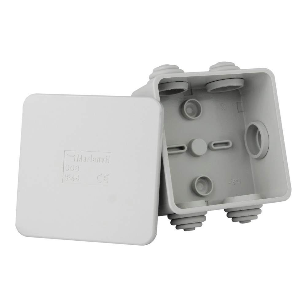✔️ Aufputzdosen sind ideal als Kabelkanäle für die Wand- und Deckenmontage. Die Abzweigdosen von Marlanvil zeichnen sich durch hohe Qualität und zuverlässige Dichtheit dank der Schutzart IP44 aus. Die Abzweigkasten sind ideal für die Aufputzinstallation im Innenbereich und für die geschützte Außenaufstellung. Ein weiterer Vorteil ist die Abwesenheit von schädlichen Halogenen, so dass die hermetische Dose im Brandfall nicht durch hohe Schädlichkeit gekennzeichnet ist. Die Installationsdose verfügt über sechs PE 25-Membranen. Außenmaße sind 89x89x45 mm, Innenmaße sind 80x80x40 mm.