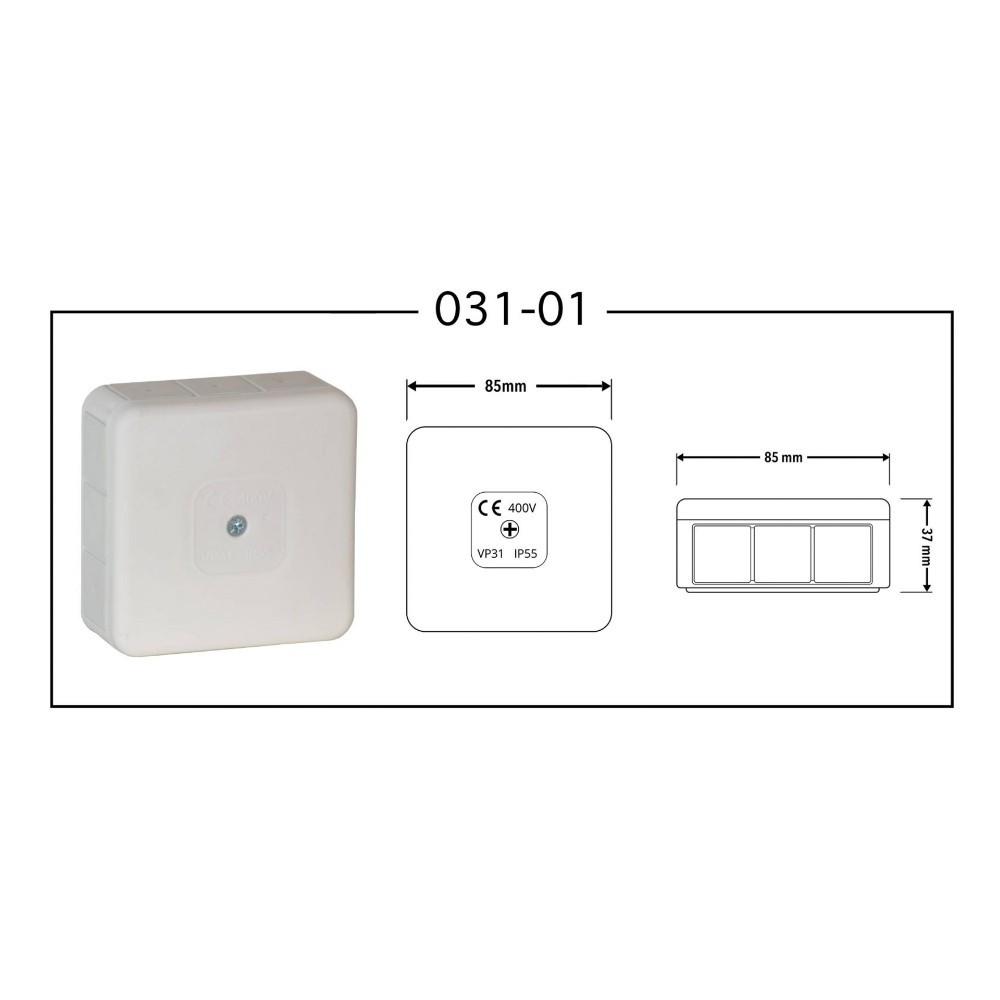➡️ Die Abmessungen der Abzweigdose betragen 85x85x37mm. Sie hat 12 Kabeleinlässe.