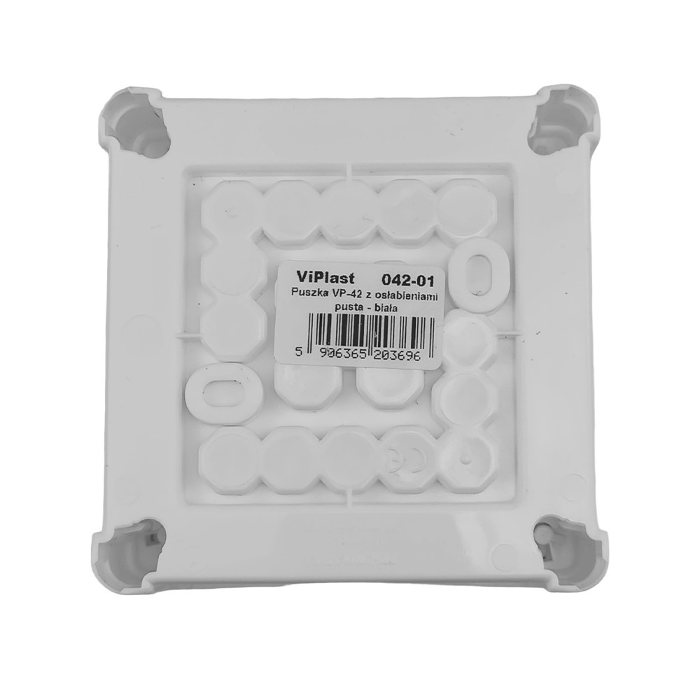 - Anschlussdose mit den Maßen 98x98x42mm und Schutzart IP55 ViPlast.