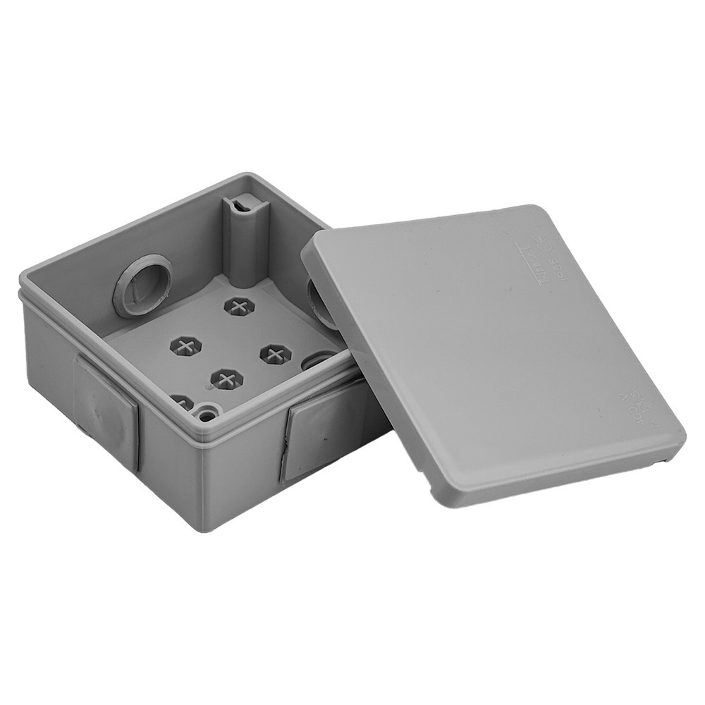 - Anschlussdose mit den Maßen 86x86x40mm und Schutzart IP55. Abzweigkasten Aufputz Dose IP55 ViPlast 4 Eingängen Grau
