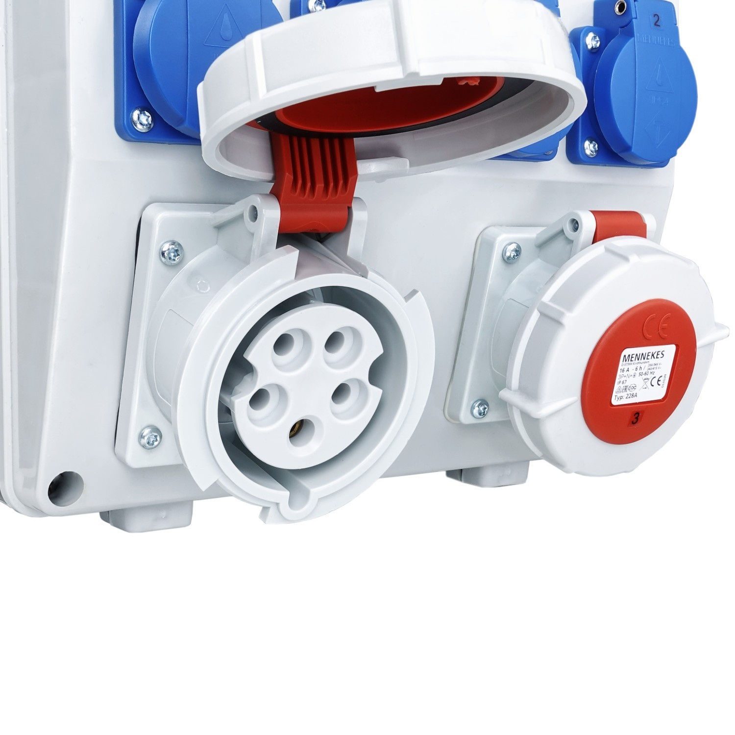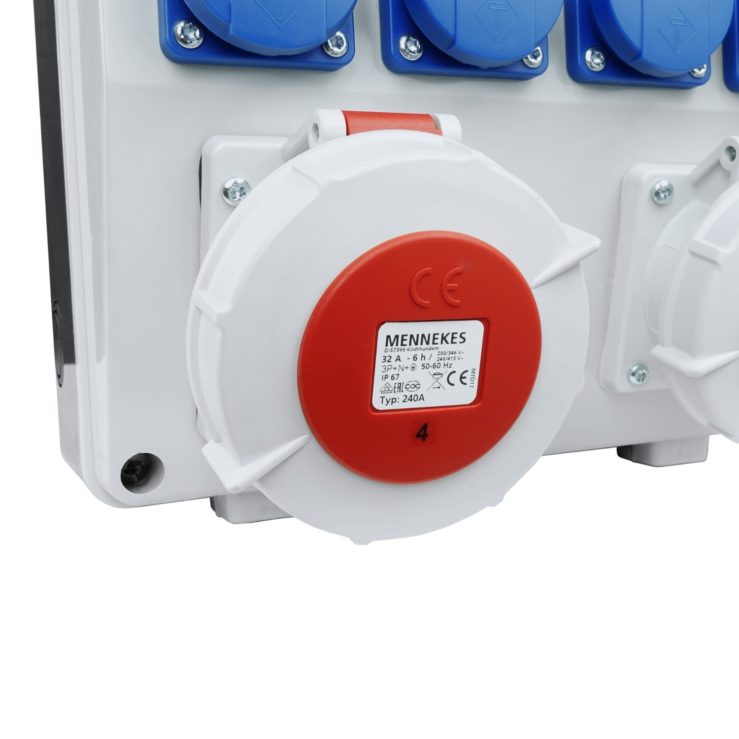 ✔️ 1x 400 V 16 A und 1x 400 V 32 A CEE-Steckdosen, Schutzklasse IP 67,
