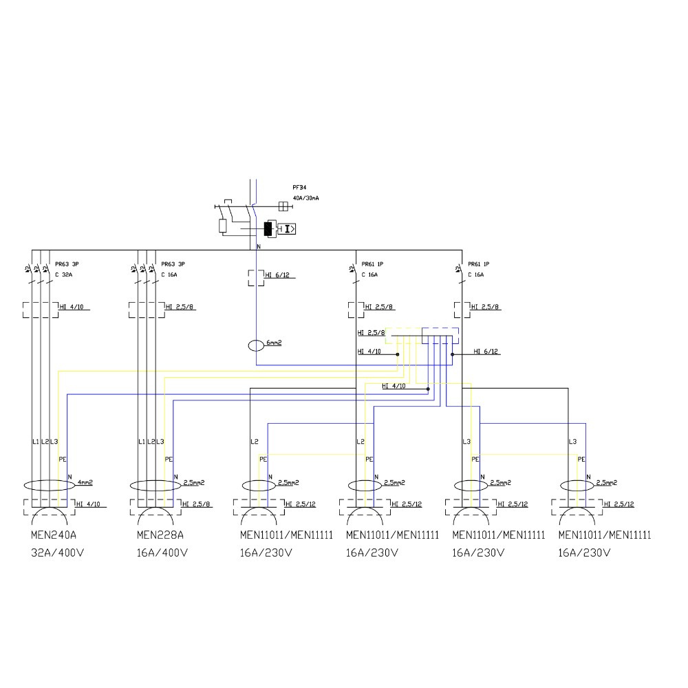 ✔️ Leitungschutzschalter der CEE-Steckdosen 1x C16 3P 10kA, 1x C32 3P 10kA,