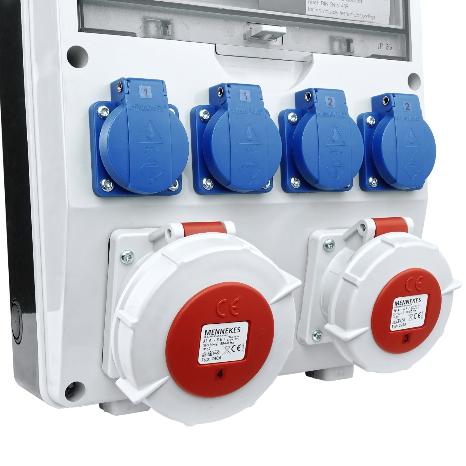 Baustromverteiler Stromverteiler TD-S/FI 32A 16A IP54 4x230V Schuko System Mennekes-Steckdosen Doktorvolt®