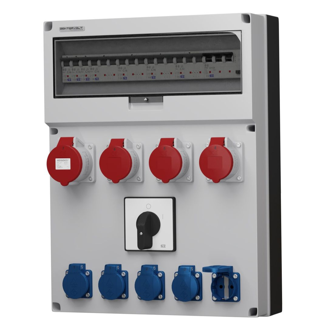 Baustromverteiler Stromverteiler GR-S/FI 32A 3x16A 5x230V mit Nockenschalter 0-1 Schuko System Mennekes-Steckdosen Doktorvolt ®