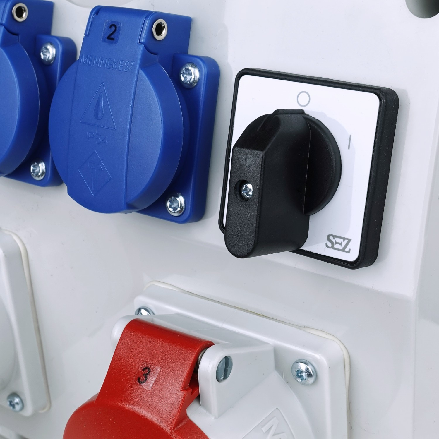 ✔️ 1x 400 V 16 A und 1x 400 V 32 A CEE-Steckdosen, Schutzklasse IP 44,