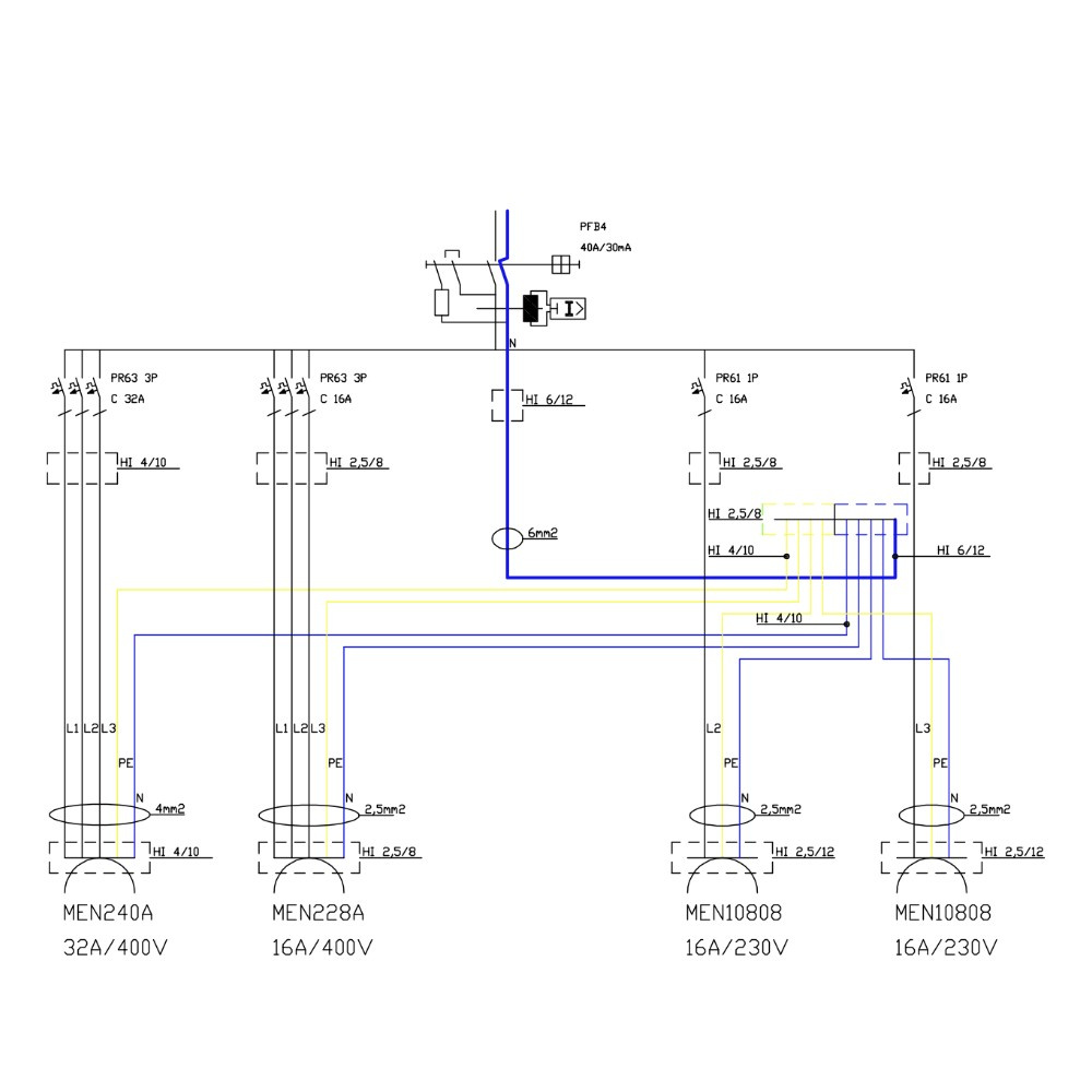 ✔️ Leitungschutzschalter der CEE-Steckdosen 1x C32 3P 10kA, 1x C16 3P 10kA,