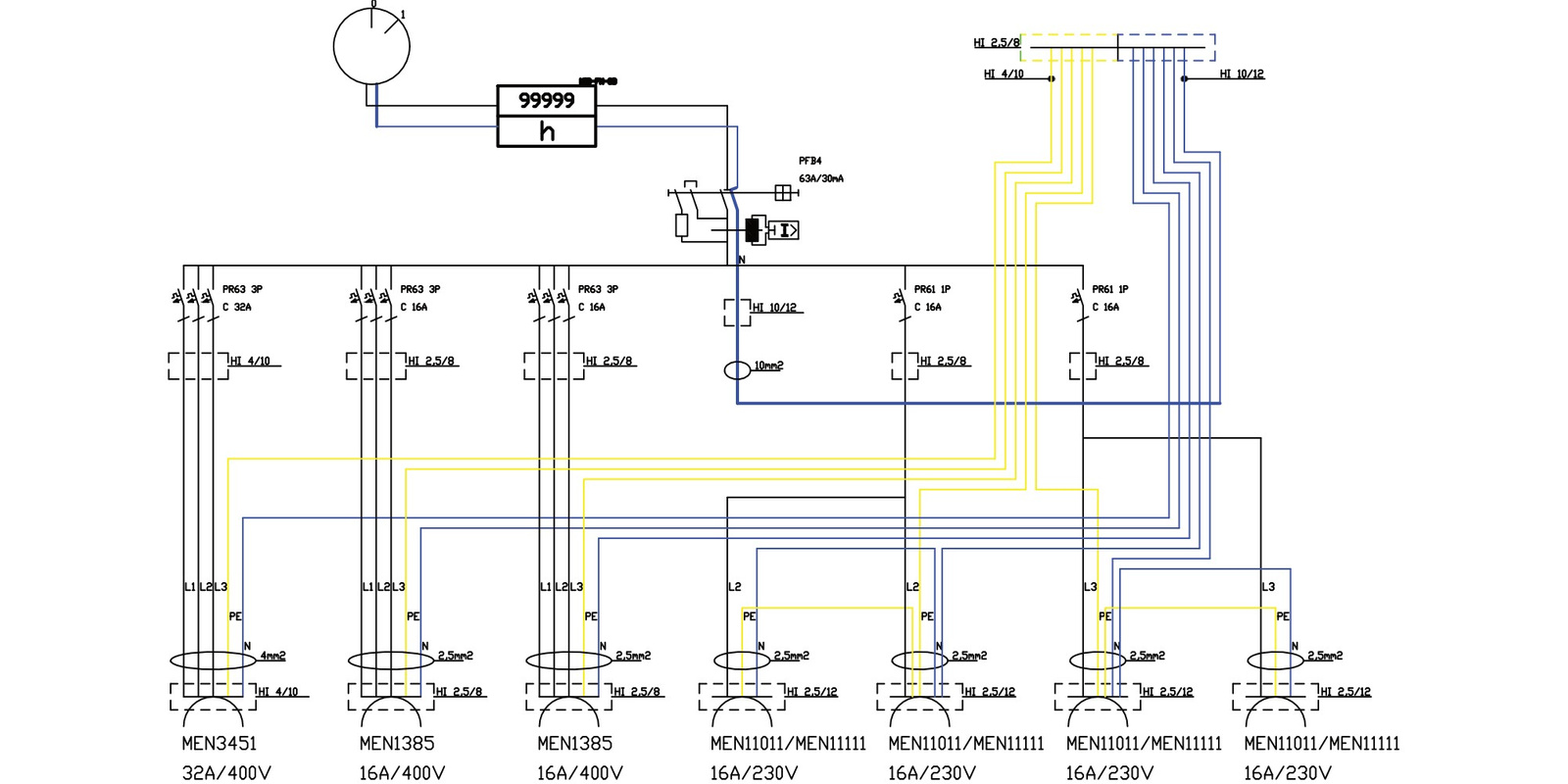 1x C32A 10kA 3P 2x C16A 10kA 3P |