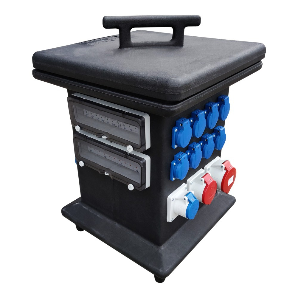 Stromverteiler KIB-S/FI 2x32A 2x16A 2xCamp 16x230V + Einbaustecker 32A