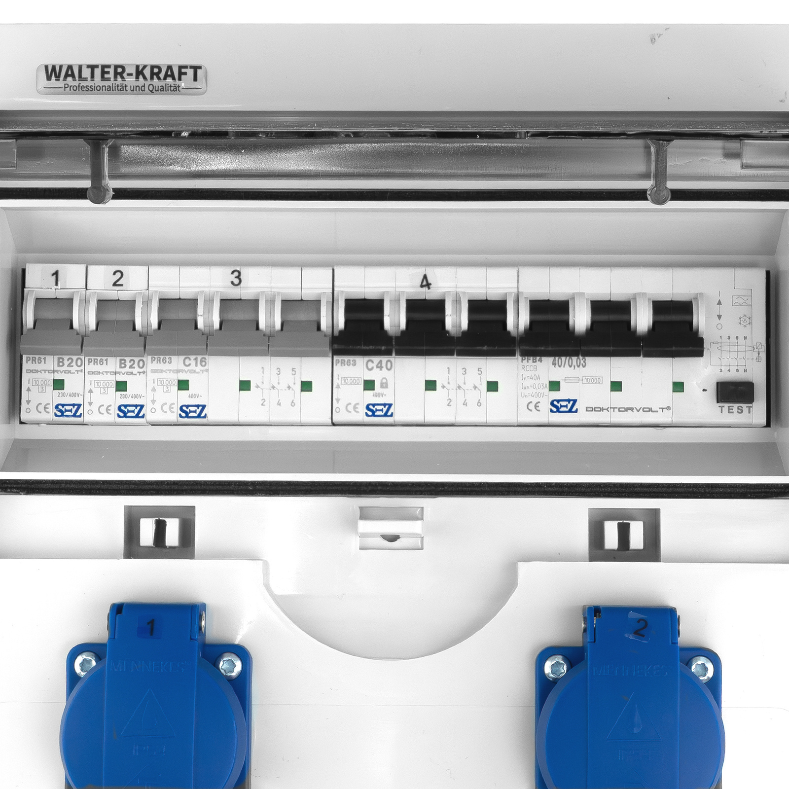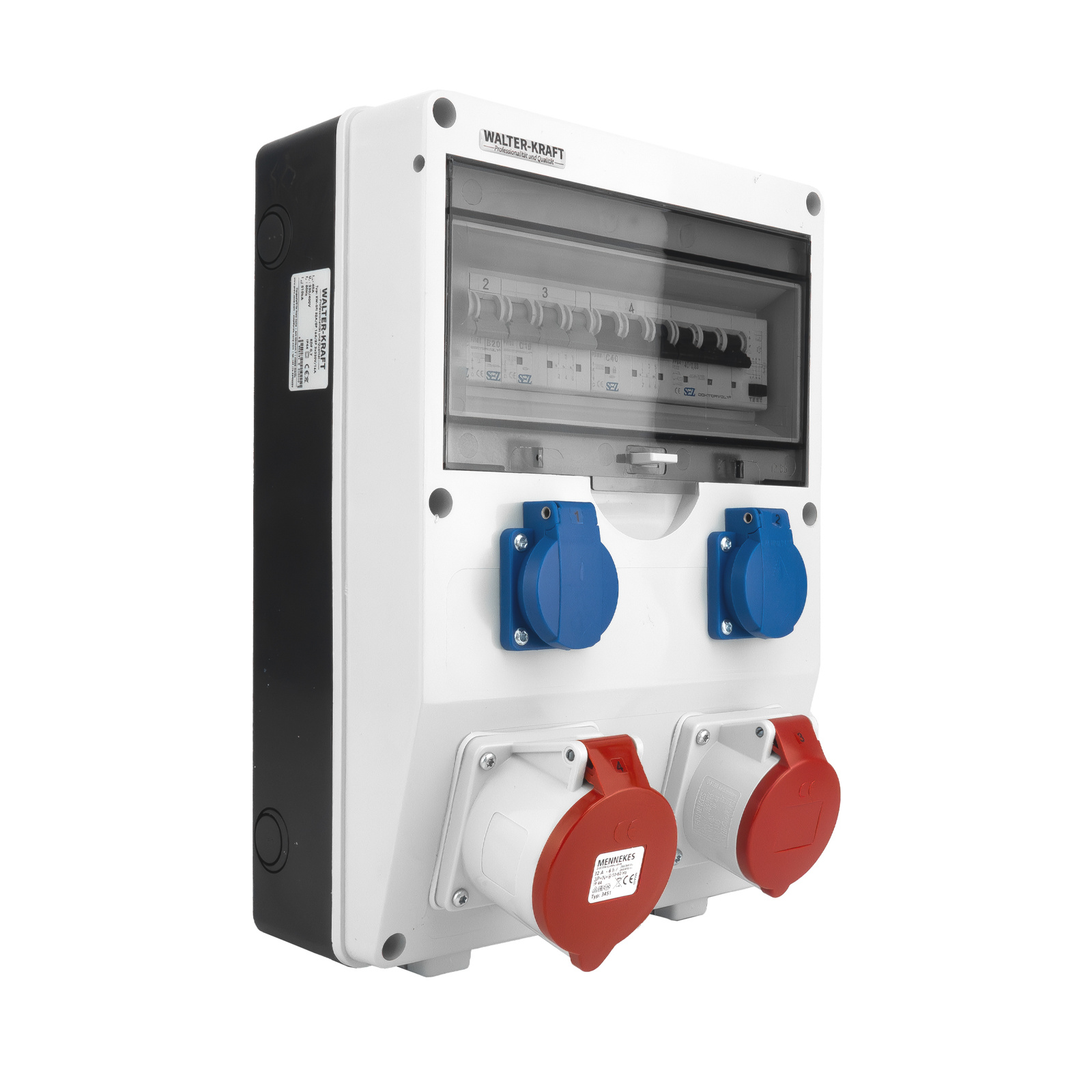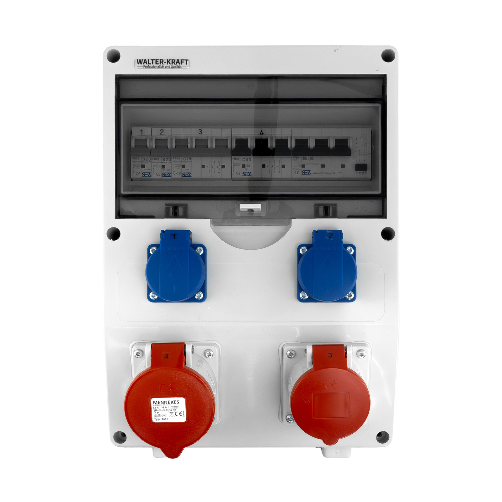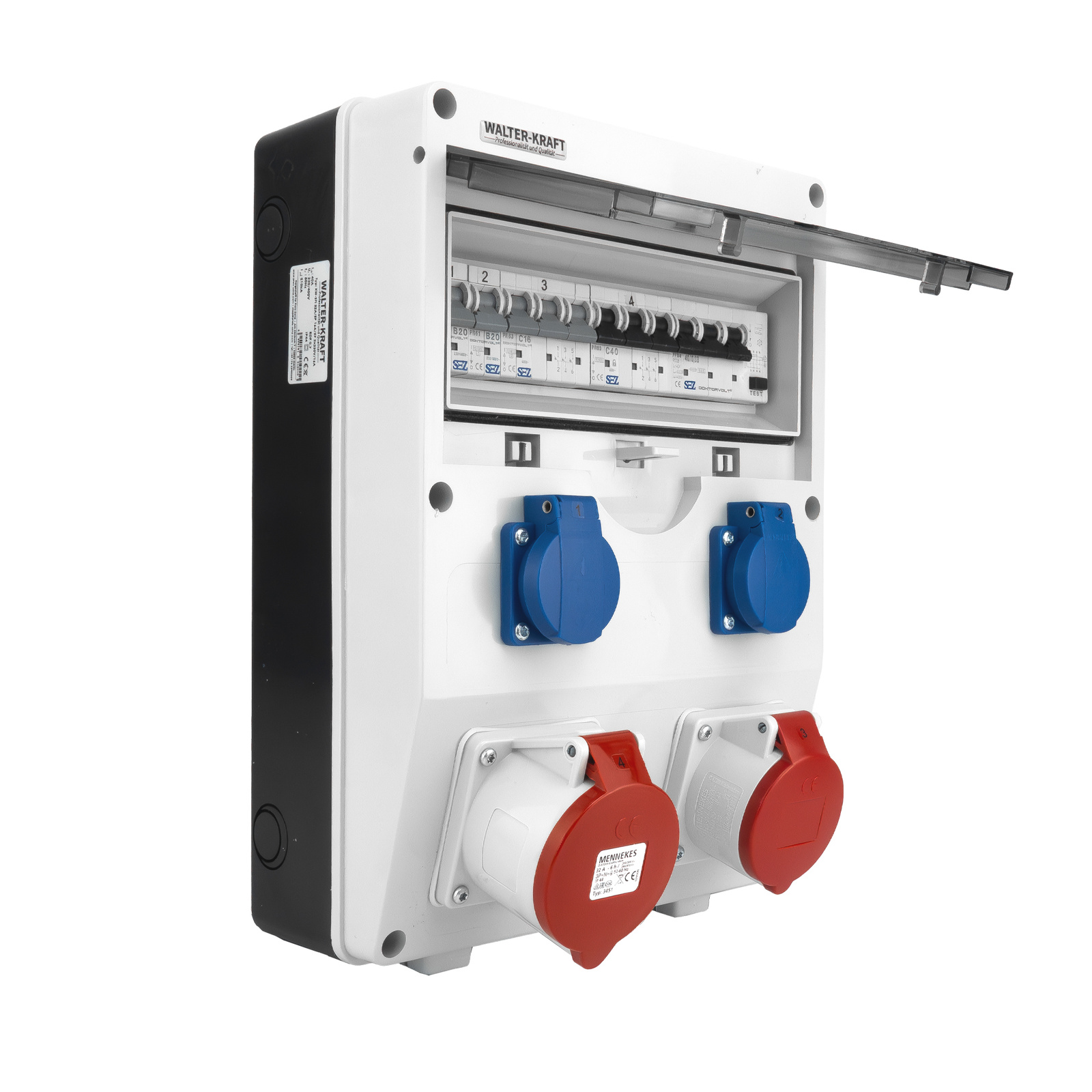 Baustromverteiler Walter-Kraft-S/FI 32A 16A 2x230 Schuko System Mennekes-Steckdosen KW-0010-D