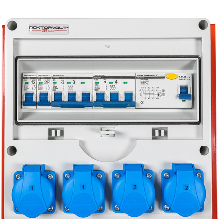 Mobiler Baustromverteiler auf Ständer SET-S/FI tragbar mit Steckdosen 16A 32A CEE MENNEKES 4x230V Stromverteiler für Baustellen Stromkasten mit Schutz Doktorvolt DV-0126-D