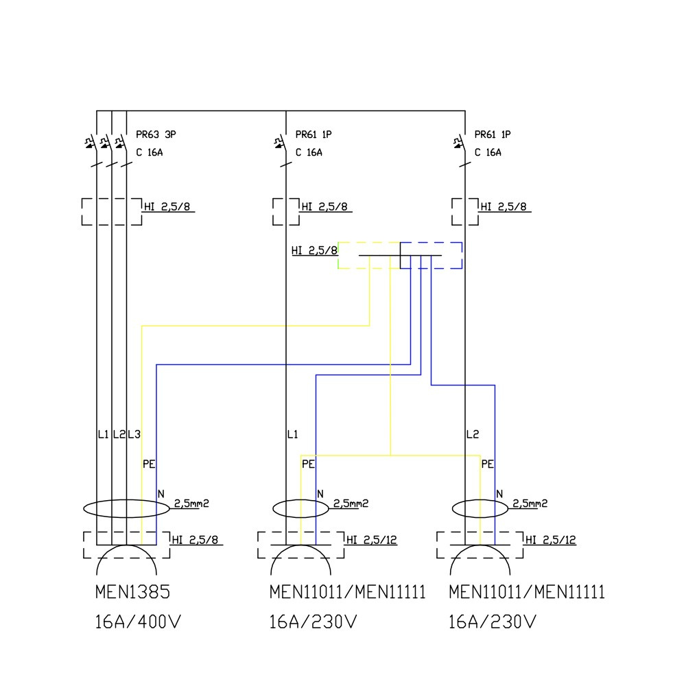 230V Steckdosen abgesichert 2x C16 10kA 1P