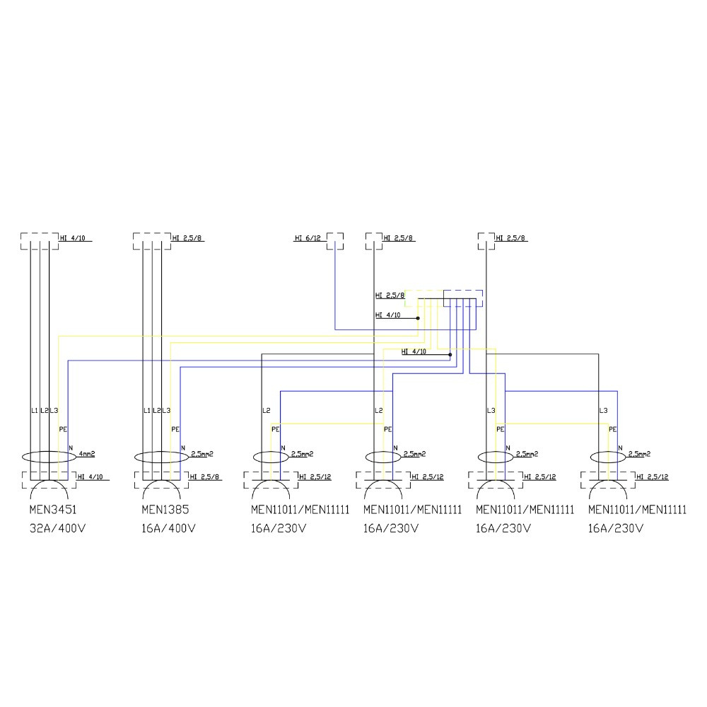 230V 16A Steckdosen 4 x 230V 16A Mennekes 11011 IP54 2P+E Schuko System
