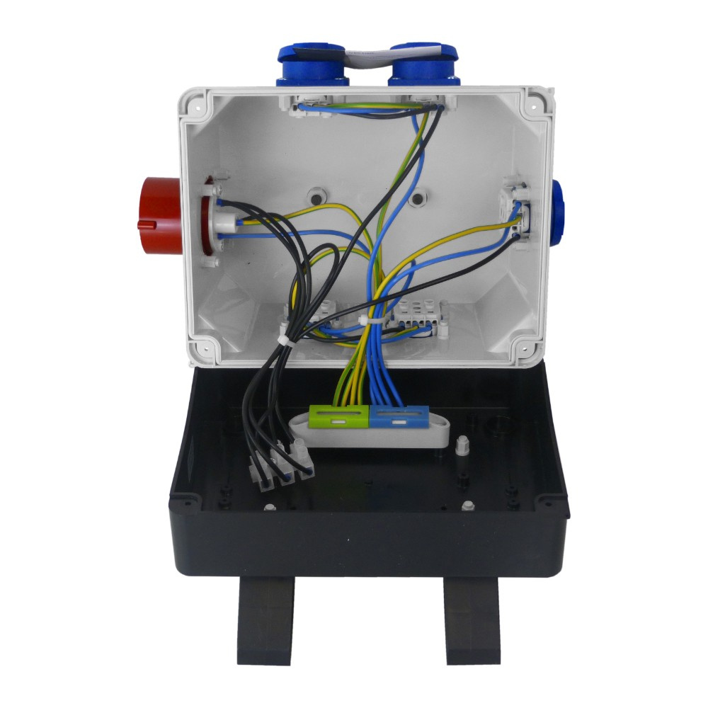 ✔️ ausgestattet mit fünf 5x 230 V 16 A Steckdosen und 1x 16A Anbaustecker,
