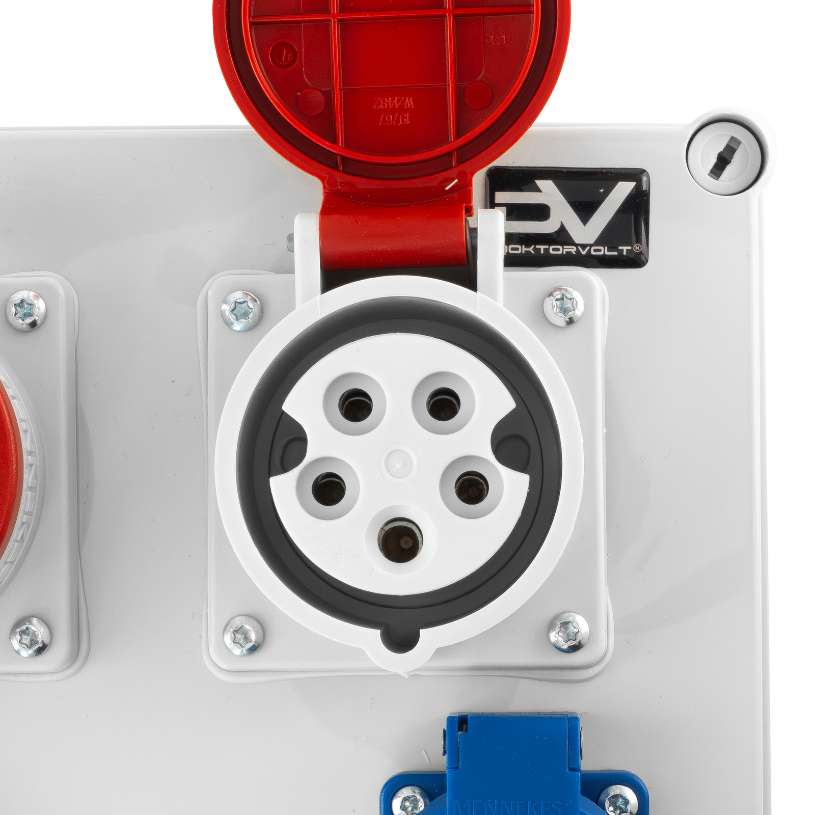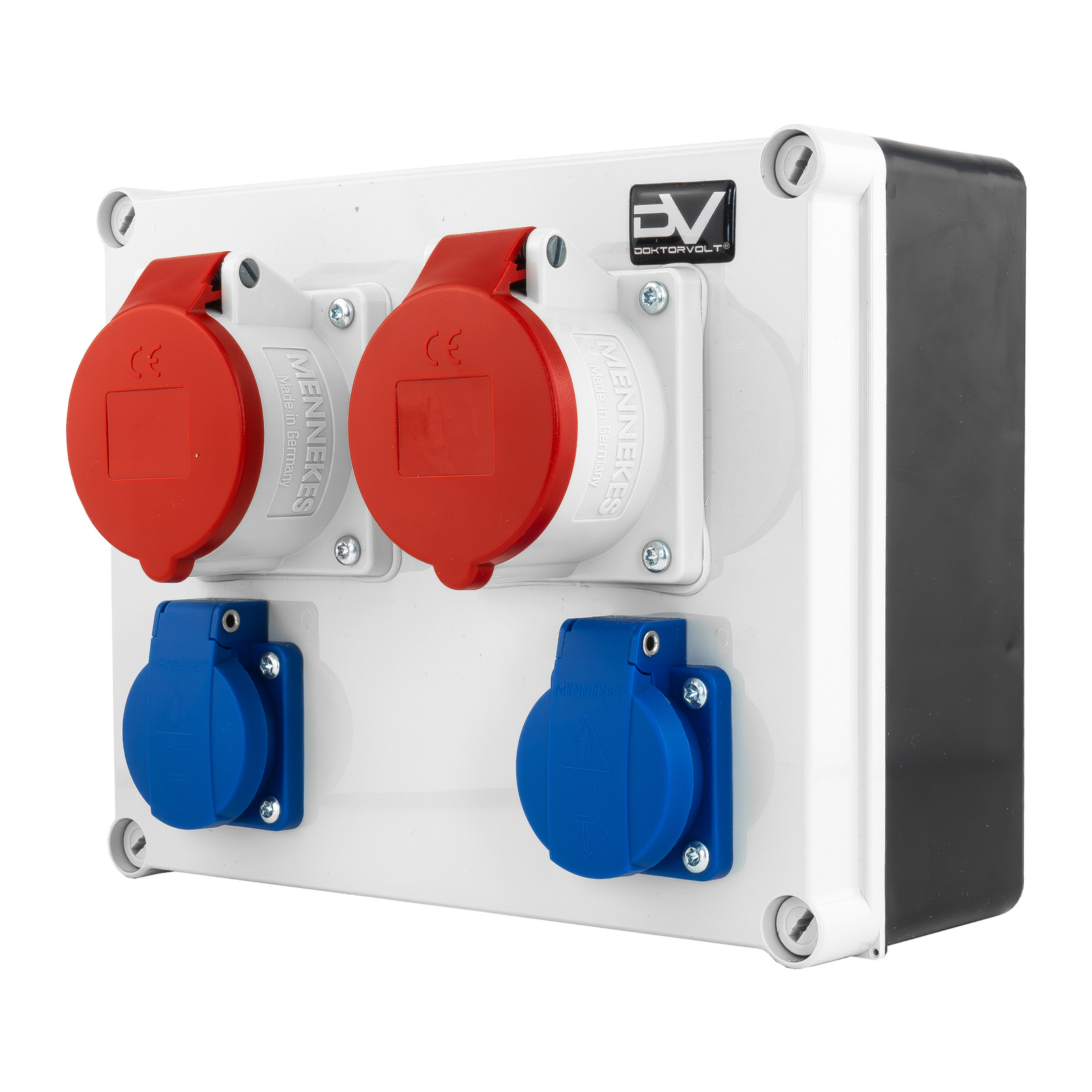 - Baustromverteiler 2x16A 2x230V von Doktorvolt – kompakt, anschlussfertig und robust. Mit Schutzart IP44 bietet er sichere und zuverlässige Stromverteilung auf Baustellen, in Werkstätten und bei Outdoor-Events.