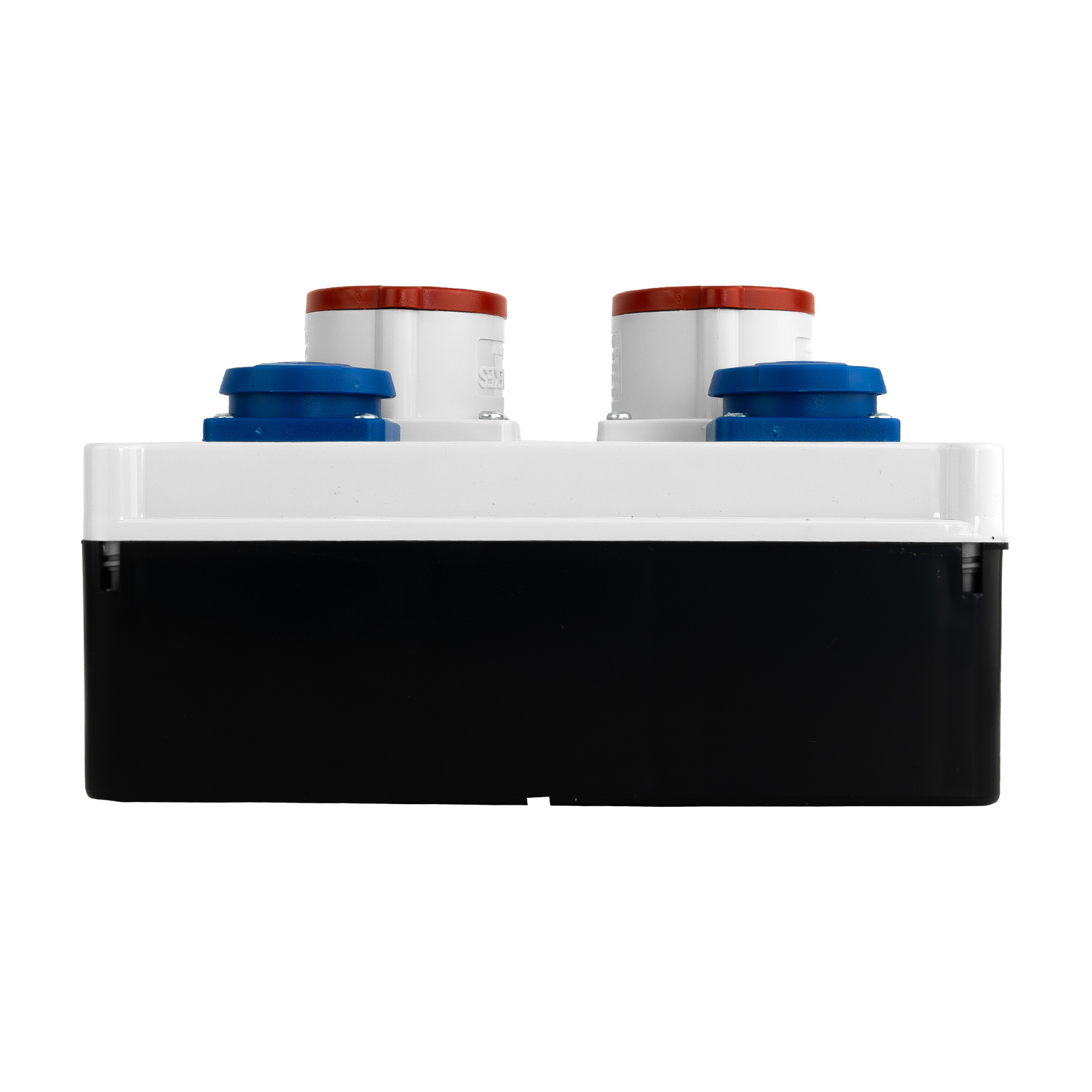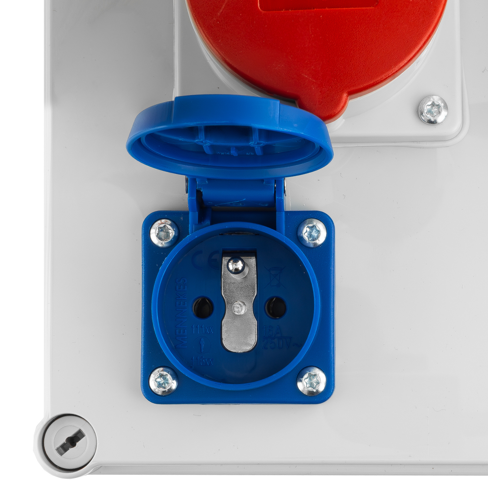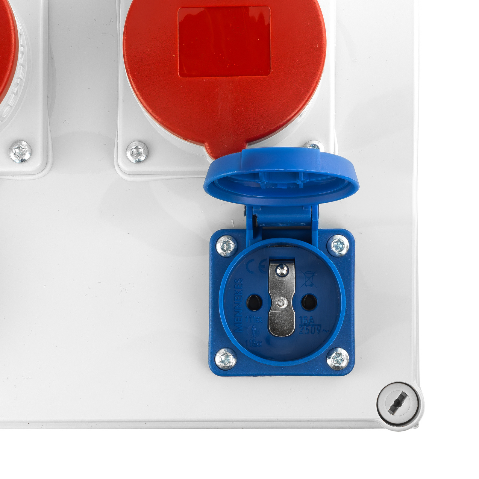 230V-Steckdosen: 2x 230V 16A 2P+E IP44 blau Typ 11111, französisches System Typ E, Mennekes