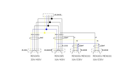 | Verkabelungtyp | H07V-K Leitung 2,5, 4 mm2 gelb-grün H07V-K Leitung 2,5, 4 mm2 schwarz H07V-K Leitung 2,5, 4 mm2 blau |