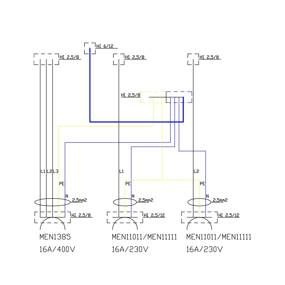 230V Steckdosen: 2 x 230V 16A IP44 2P+E Mennekes franz/belg System