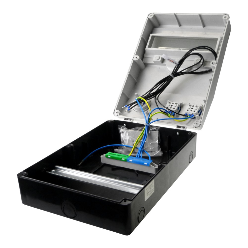 Dieses Modell punktet mit einer Aufputzkonstruktion und einem Gehäuse aus Technopolymer, das einer Nennspannung von 1000 V standhält. Die Abmessungen von 360 × 250 × 185 mm bieten ausreichend Platz für 12 Module in einer Reihe, während das Türmaterial Polycarbonat für eine hohe Schlagfestigkeit sorgt.