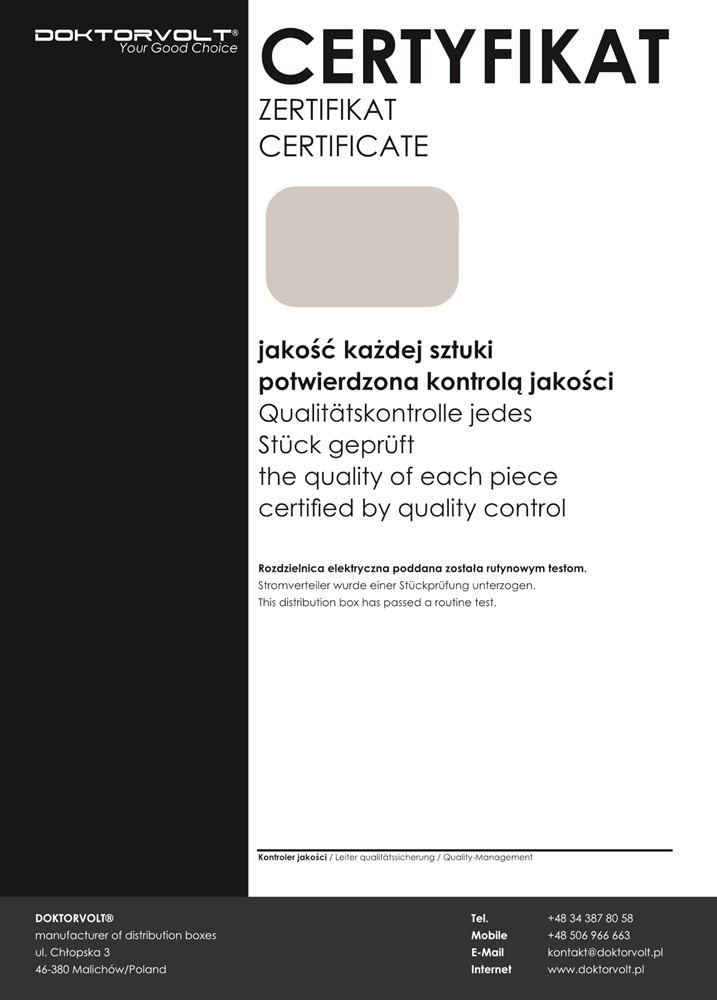 ➡️ Bei der Herstellung der Stromverteiler hat Doktorvolt® vom TÜV SÜD zertifiziertem Managementsystem implementiert: