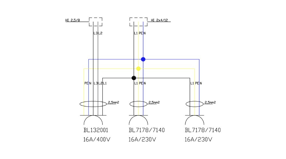 2x230V 3P 2P+PE 250V AC IP44 blau Typ 7140 Bals