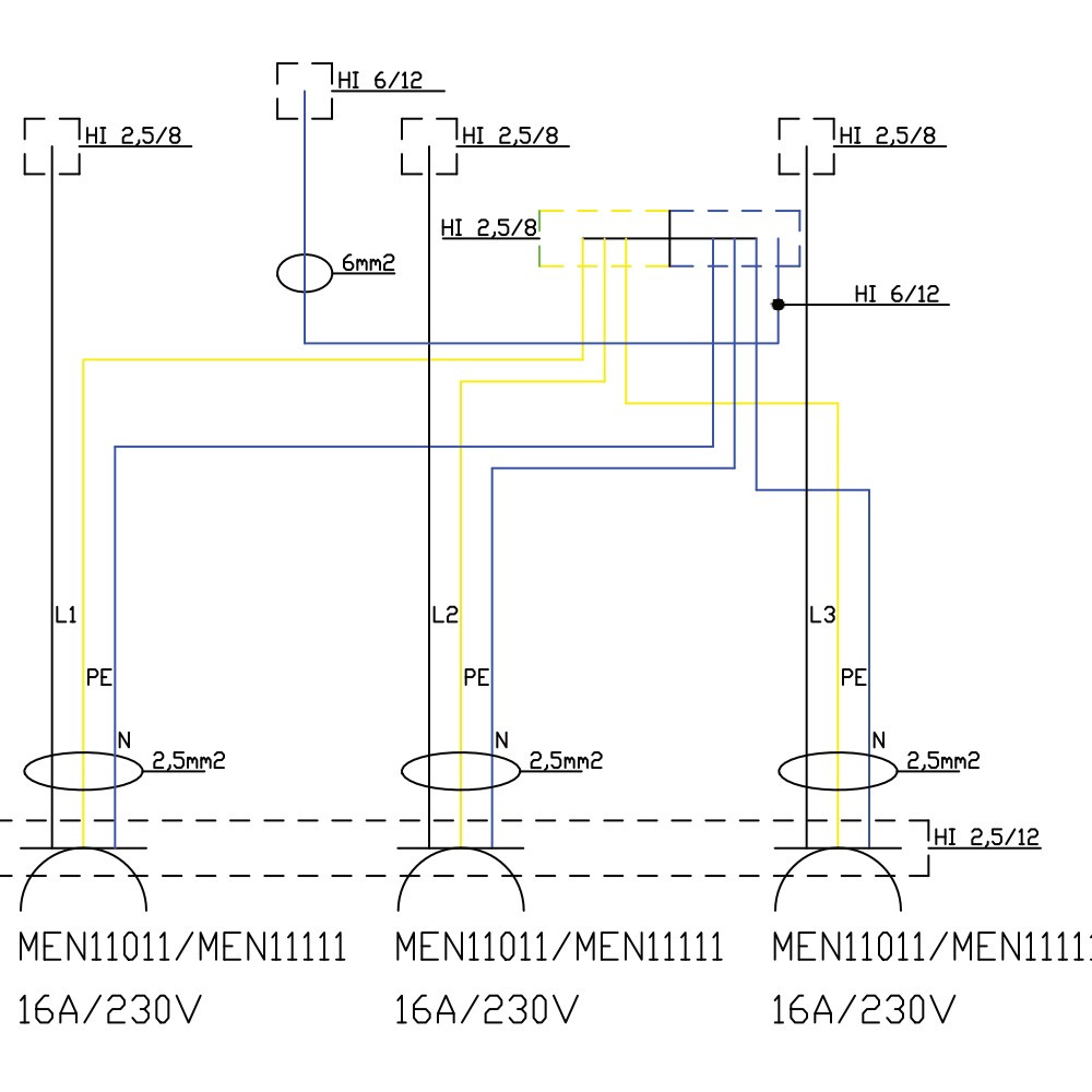 | Verkabelungtyp | H07V-K Leitung 2,5 mm2 gelb-grün H07V-K Leitung 2,5 mm2 Schwarz H07V-K Leitung 2,5, 4 mm2 Blau |