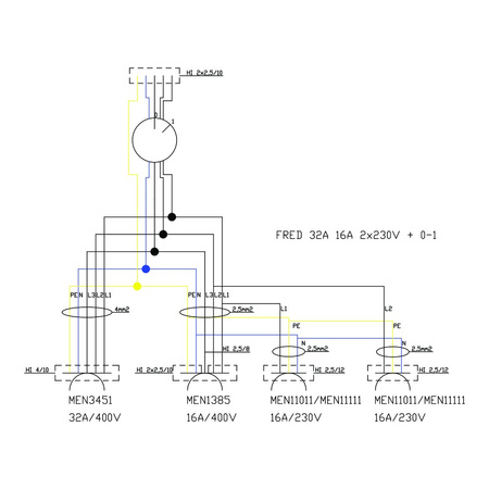 Stromverteiler FRED 32A 16A 2x230V franz/belg System mit Nockenschalter 0-1 Mennekes Doktorvolt® DV-9634-F