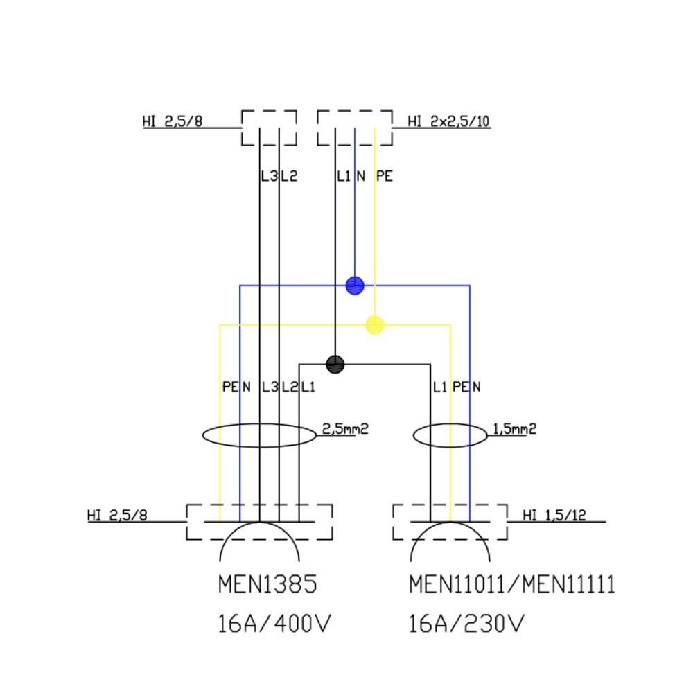 1 x 230V 16A 230V 2p+E IP54 blau Typ 11011 Typ F Mennekes Schuko System |