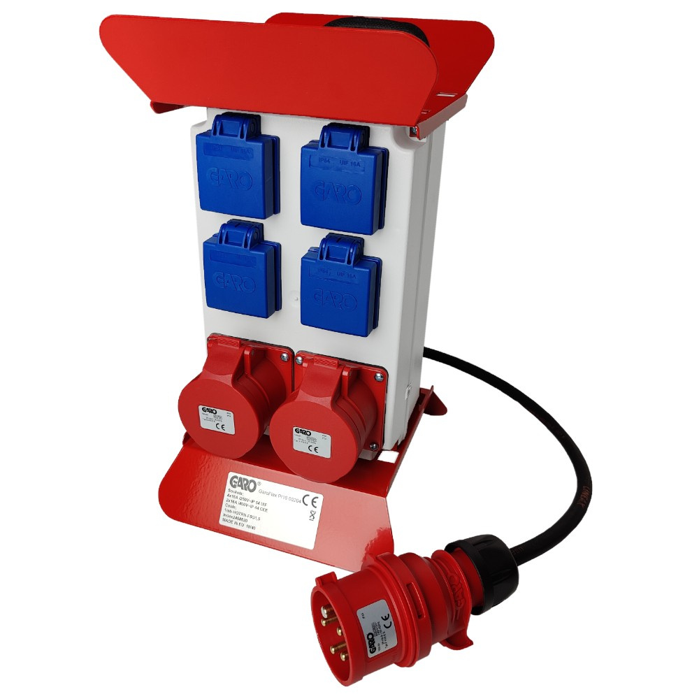 • Bestückung: 4x 230V 16A Schuko-Steckdosen, 2x 16A 5P 400V CEE-Steckdosen