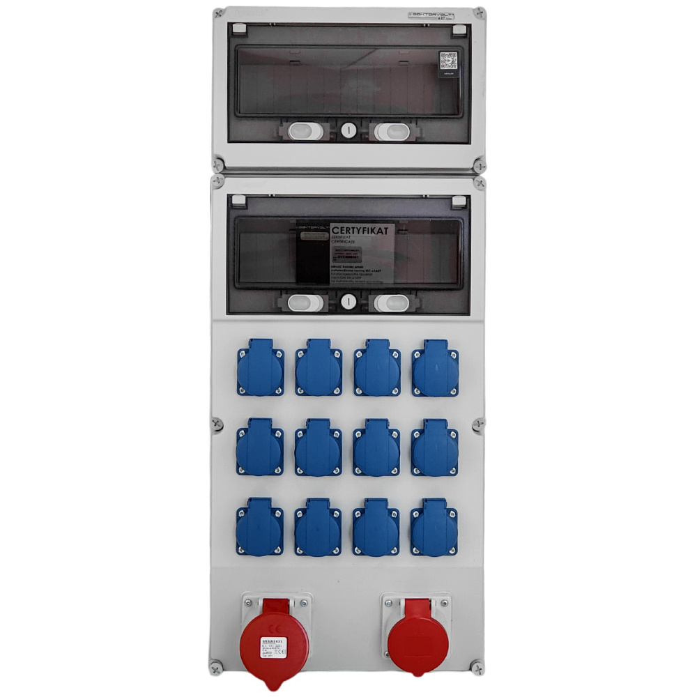 ✔️ ausgestattet mit zwölf 12x 230 V 16 A Steckdosen und 1x 400 V 16 A, 1x 32 A 400 V Mennekes-Steckdosen,