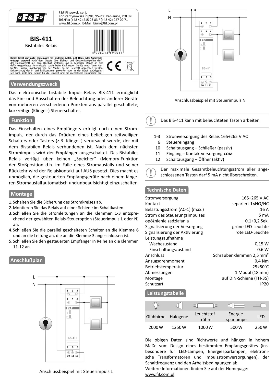 - Bistabile pulse Stromstoßrelais Relais F&F BIS-411 230V online shop preis-zone in kitzingen