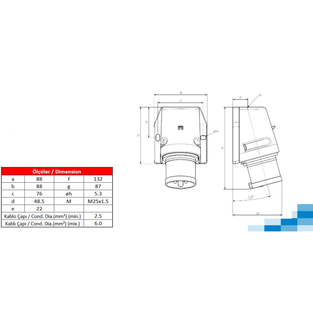 CEE Wandstecker Camping 3P 32A 230V IP44 3124-312-0900