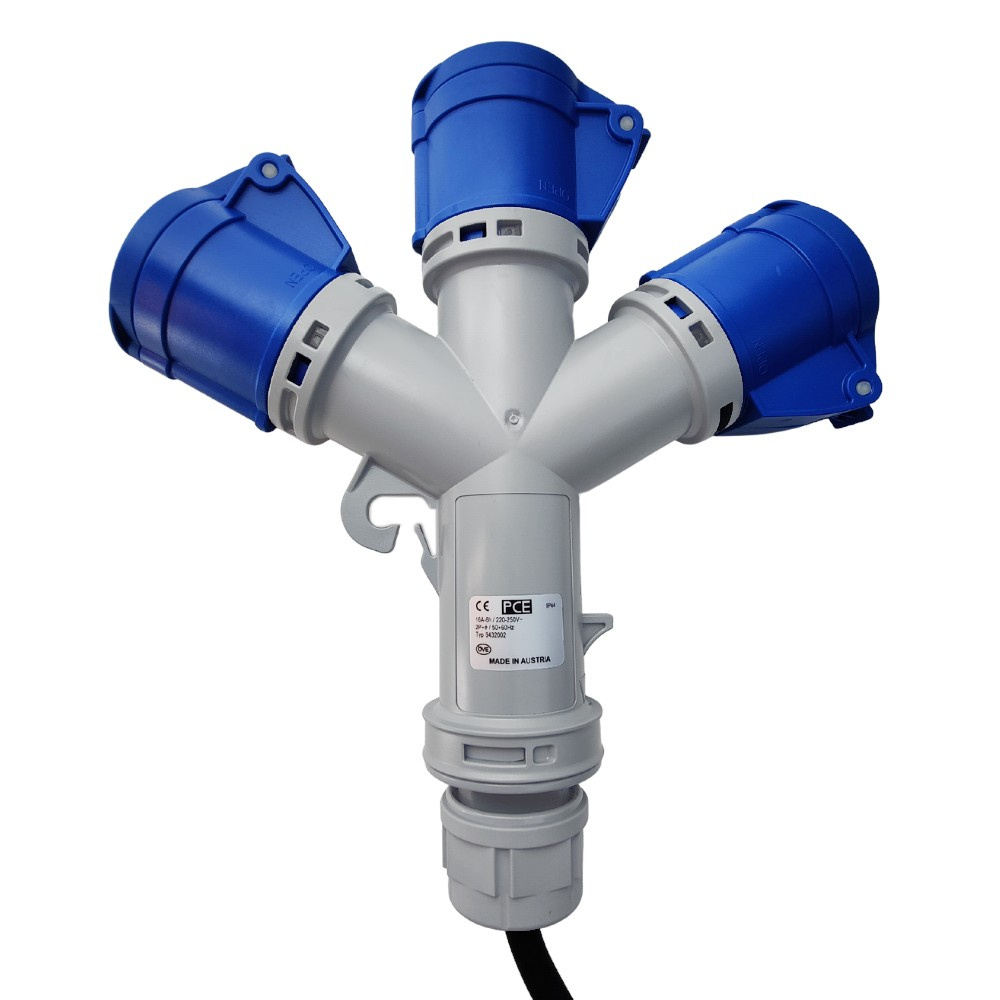 Verlängerung CEE 16A Stecker auf 3x CEE-Kupplung der Marke Marlanvil