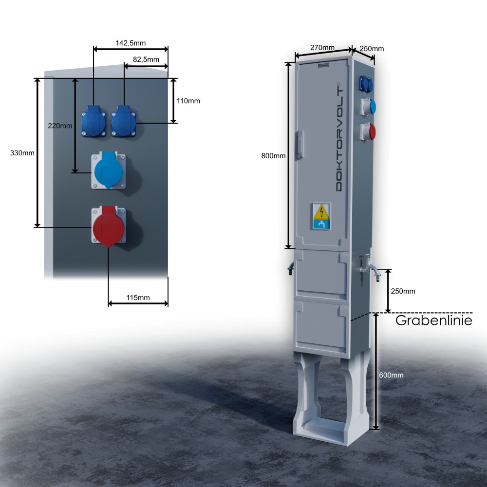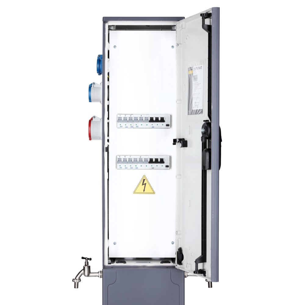 ➡️ CV-CAMP sind Säulen, die für die Stromverteilung konzipiert sind. CV-CAMP sind Camping Stromverteiler für die Verteilung von Strom und Wasser. Die CV-CAMP-Marinaverteiler ist mit 2x dreiphasigen 16A Steckdosen, 2x 230V 3P Camping Steckdosen und 4x 230V Schuko Steckdosen im Standard ausgestattet, die jeweils durch Erdung geschützt sind, sowie einem automatischen Fehlerstromschutzschalter mit Reset-Taste. Die Campingverteiler verfügt auch über eine Installation zur Wasserverteilung.