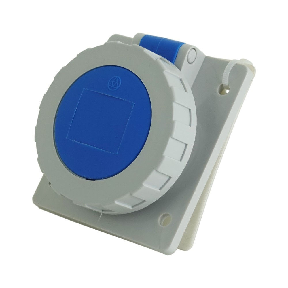 - Hochwertige 230V Einbausteckdose mit schräger Ausführung und Schutzart IP67. Findet ihren Einsatz in der Industrie in vielen Bereichen. Robuste Konstruktion.
