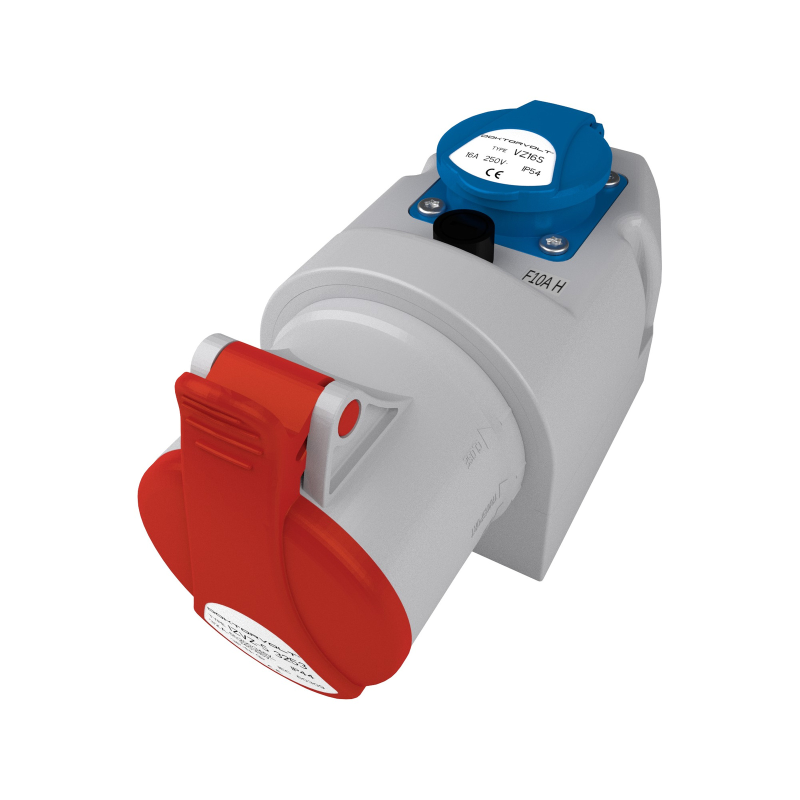 1 x 32A 5P (3P+N+T) 6h 240-415V~ IP44 rot Steckdosen SEZ DK 1x SCHUKO 16A, 230V blau Steckdosen IP54 SEZ DK |