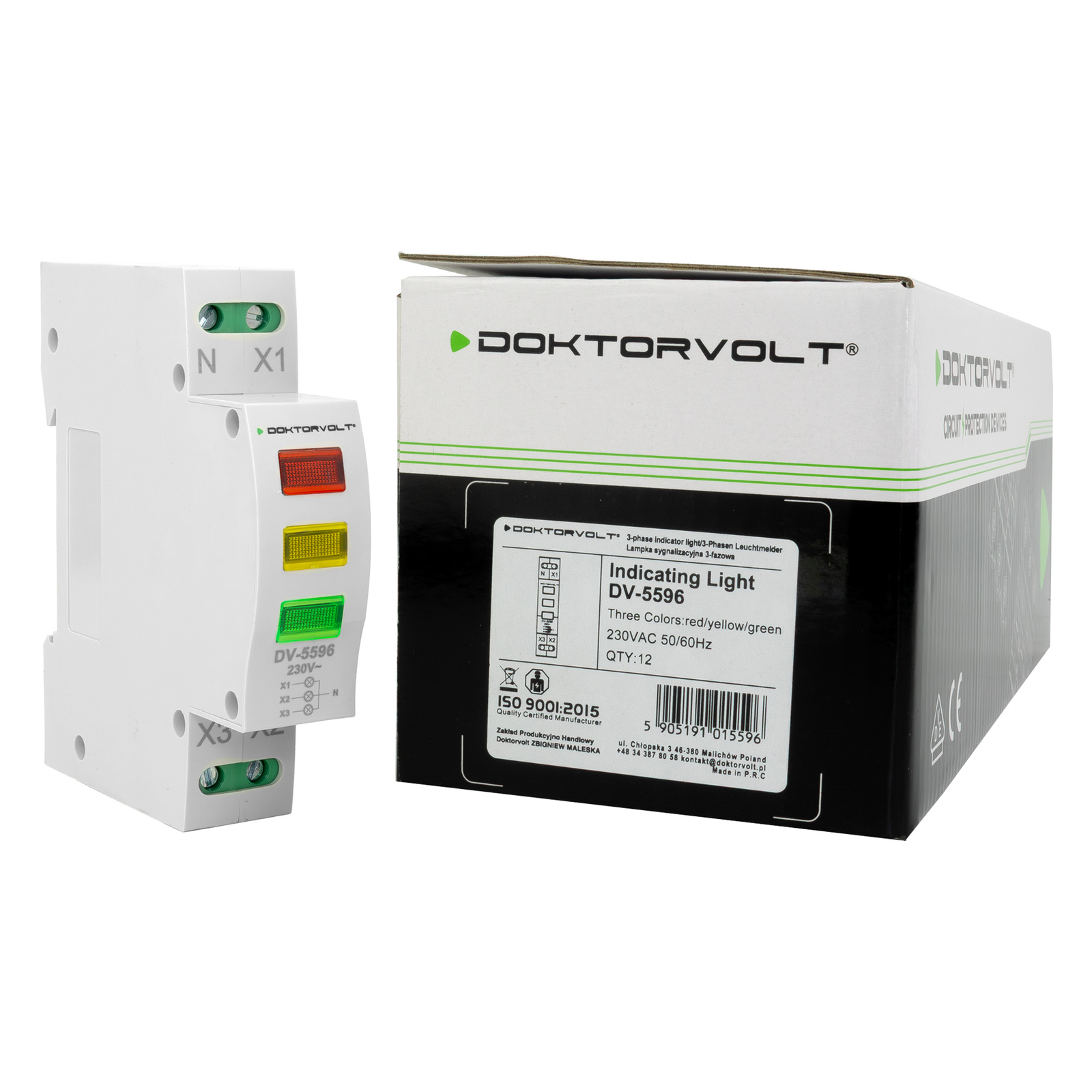 Leuchtmelder LED Dreiphasig 230V/400V Phasenkontrolle Signalleuchte rot grün gelb Doktorvolt DV-5596