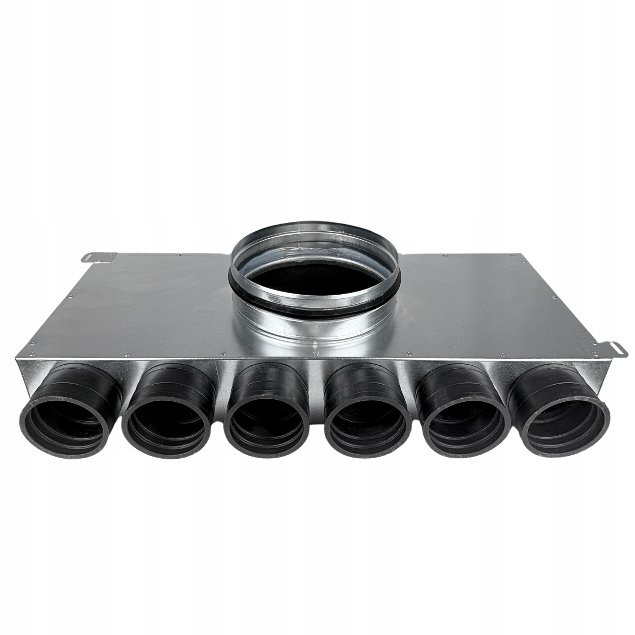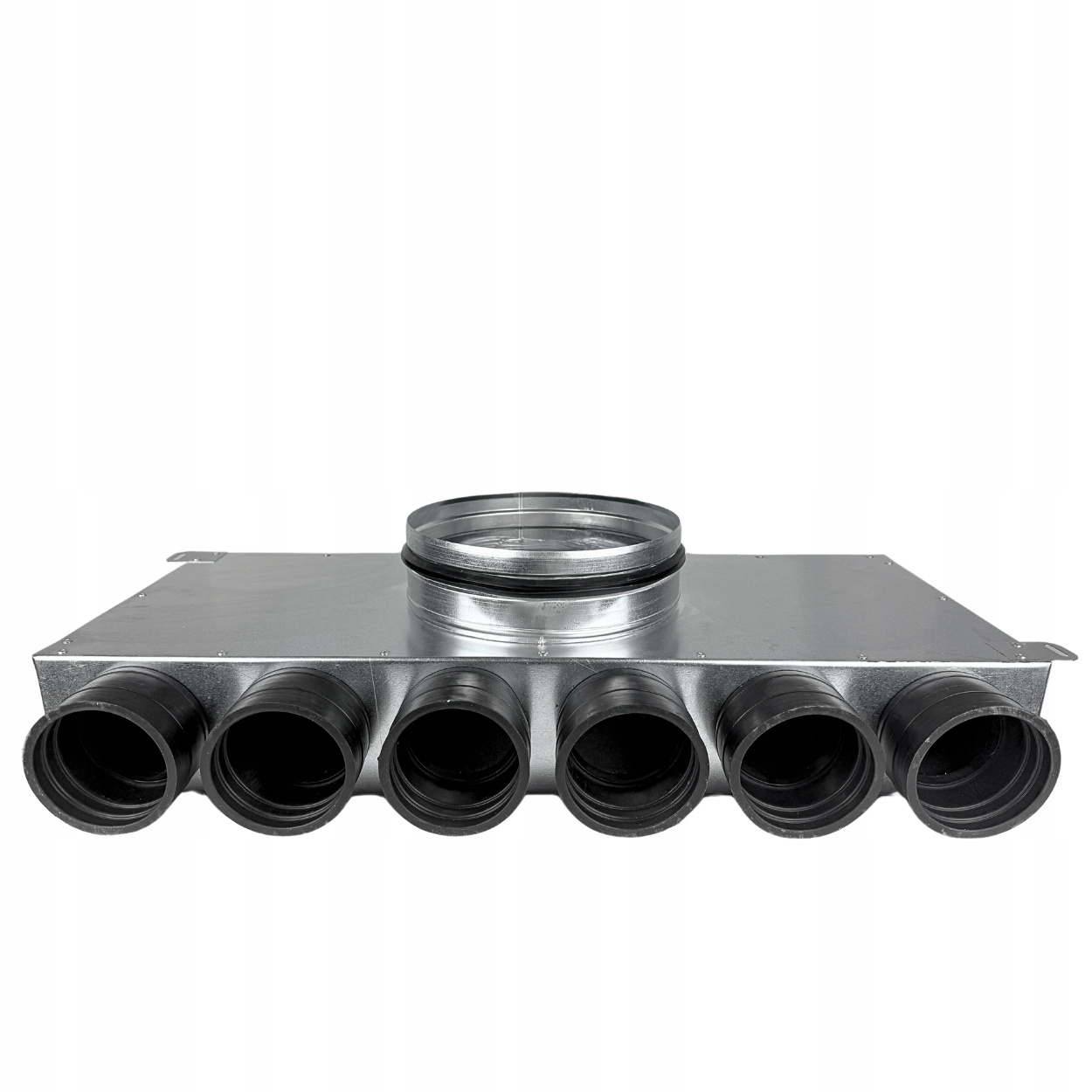 Sechsfacher Rohrverteiler mit selbstabdichtenden Gummianschlüssen für absolute Dichtheit ohne Dichtungen. Die modulare Bauweise gewährleistet eine komfortable Nutzung und einfache Montage. Kompatibel mit allen handelsüblichen flexiblen Lüftungsrohren Ø75. Mit Revisionsöffnung und austauschbarem Anschluss Ø200 mm.