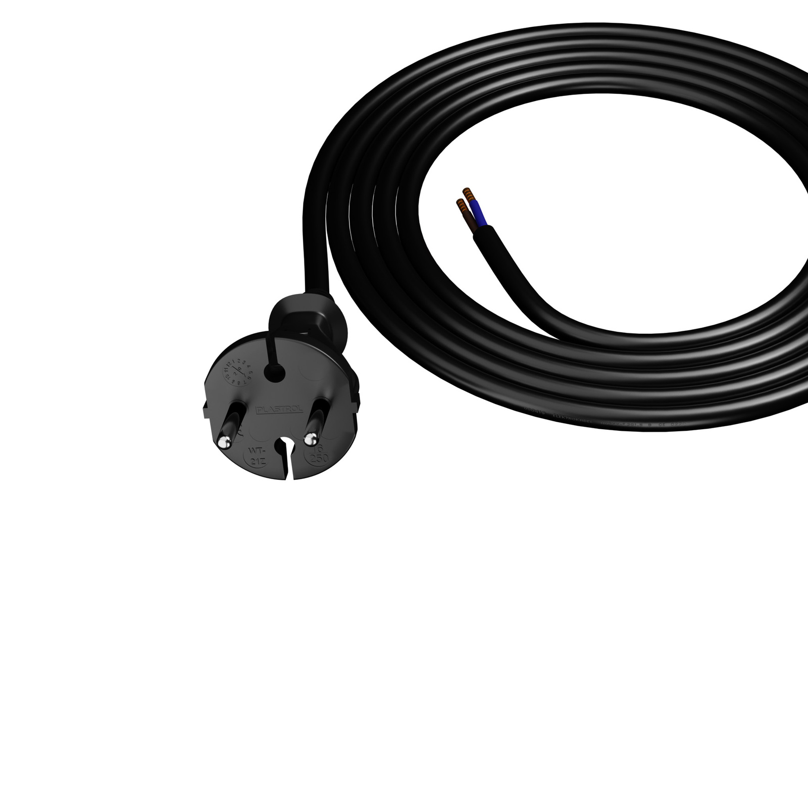 - Anschlusskabel H07BQ-F 1,5m mit geradem Stecker TYP E 230 V 16 A, Querschnitt 2×1,5 mm² PP-21. Ideal für Kleingeräte, Beleuchtung und Haushaltsgeräte. Flexibel, langlebig, montagefertig. Farbe Schwarz, hohe Qualität, CE-Konformität.