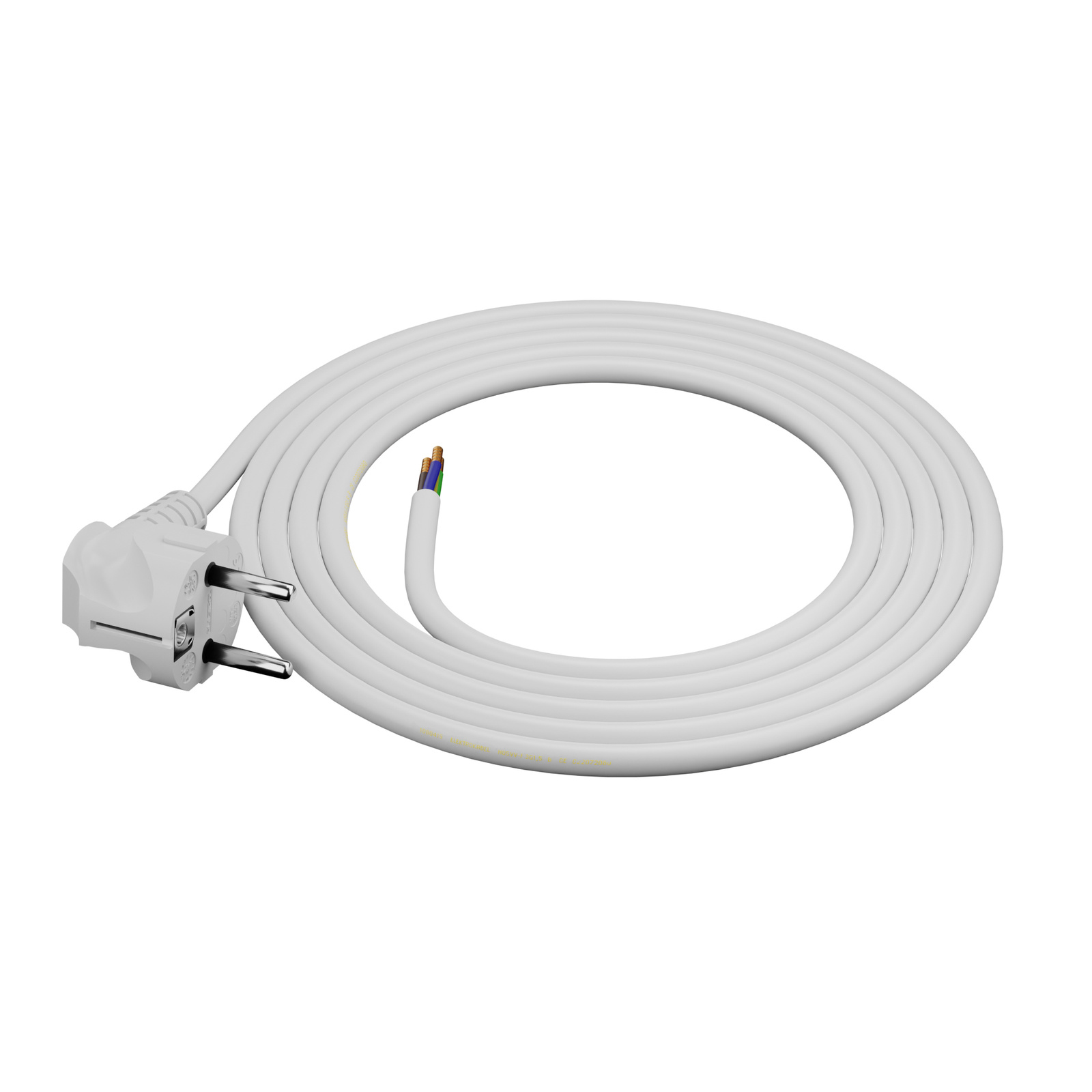 • Anschlusskabel H05VV-F 1,5m mit Winkelstecker Uni-Schuko 250V 16A, Querschnitt 3x1,5 mm² PP-50. Ideal für universelle Anwendungen im Haushalt. Flexibel, langlebig, montagefertig. Farbe Weiß, hohe Qualität, CE-Konformität.