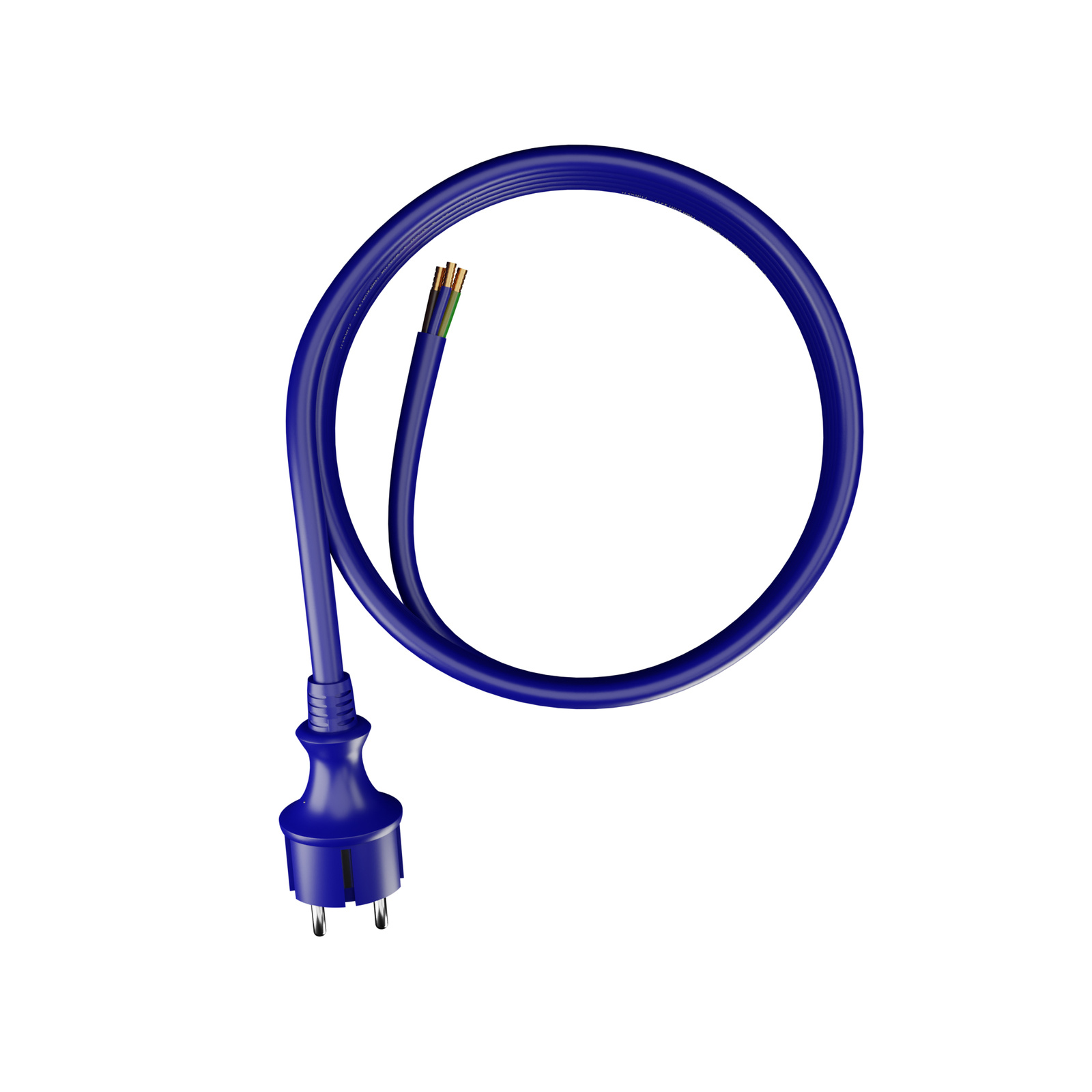 • Anschlusskabel H07BQ-F 4m IP44 mit geradem Stecker 250V 16A, Querschnitt 3x2,5 mm² PP-40H. Ideal für universelle Anwendungen im Haushalt. Flexibel, langlebig, montagefertig. Farbe Blau, hohe Qualität, CE-Konformität.